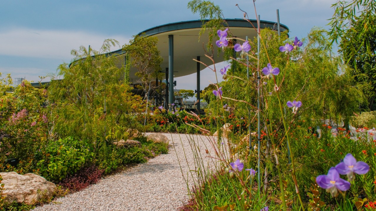 The Sustainability Gallery embodies sustainability in action. Solar panels installed on the Gallery’s roof generate energy to power the space, and a 420 sq m rain garden designed as a dry creek demonstrates nature-based solutions for urban water management, as well as serve as a habitat for pollinators.