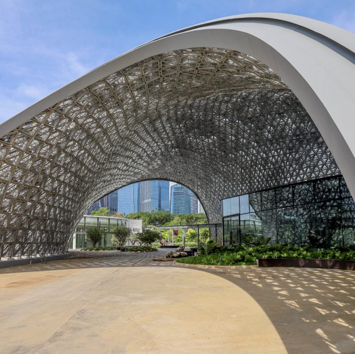 Commissioned for the Future of Us exhibition on the occasion of Singapore’s Golden Jubilee, the intricate SG50 Lattice Future of Us Pavilion explores a new dialogue between architecture and nature for the tropics through advanced design and fabrication technology.